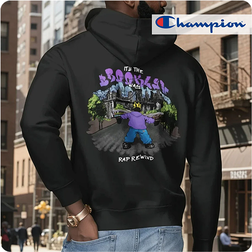 Introducing our Rap Rewind/Champion Brooklyn Hoodie. In this design you'll find the Brooklyn bridge and tributes to the world famous Brooklyn Hip Hop Culture. This Champion Hoodie is a cozy statement piece that blends style and comfort seamlessly. Made with a soft and durable fabric mix of cotton and polyester,...